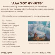 🌿 СҮРҮН ИЧЧИЛЭРИ ДЬҮҺҮННЭЭҺИН.🌿 Аал уот иччитэ — Хатан Тэмиэрийэ — киһини араҥаччылыыр уонна көмүскүүр күүстээх. Ону таһынан уот киртэн-хохтон, дьайтан ыраастыыр аналлаах.Сир-Дойду иччитэ — Аан Алахчын Хотун — айыыларга чугаһыыр үтүө санаалаах, Орто дойду дьоно этэҥҥэ олороллоругар кыһамньытын биэрэр.От-мас иччилэрэ. Эрэкэ-дьэрэкэ оҕолор — дьону батыһа сылдьан, ол-бу куһаҕан тыынтан көмүскүүр,өрүһүйэр аналлаахтар.Тыа иччитэ — Баай […]
